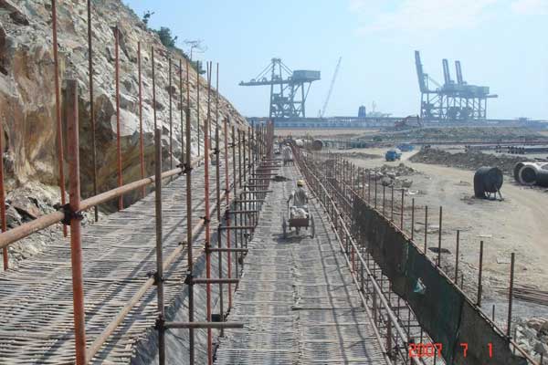 寶鋼馬跡山港工程位于泗礁本島西南1.5km處,本港至上海吳淞口約60海里,距北侖港74海里,從上海港到各大洲的國際航線均從嵊泗海域經(jīng)過。馬跡山港圍堤、陸域形成工程所需土石料由馬跡山本地就地開山采取,由寶山鋼鐵(集團)投資愈4000萬,我公司承接的寶鋼馬跡山港開山采石工程,自1996年建設以來,完成開山采石量560萬m3,爆破擠淤180萬m3,回填港區(qū)場地40萬㎡,山體護坡4萬m3,被評為部級優(yōu)良工程。
