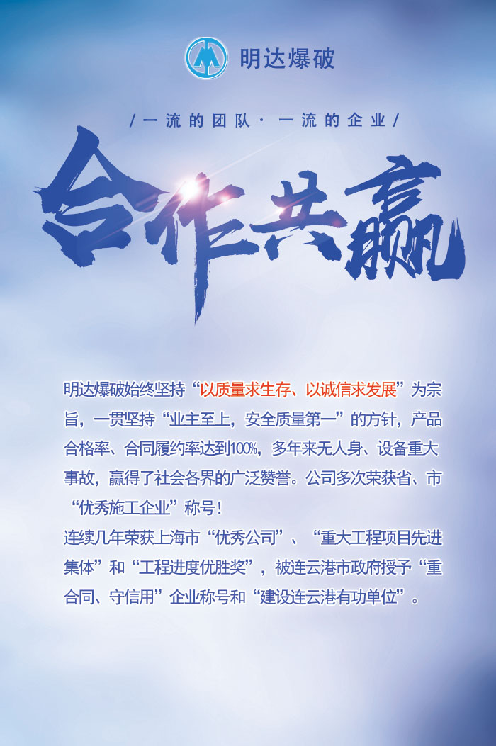 Copyright ? 連云港明達(dá)工程爆破有限公司 All rights reserved | 蘇ICP備12001007號-1